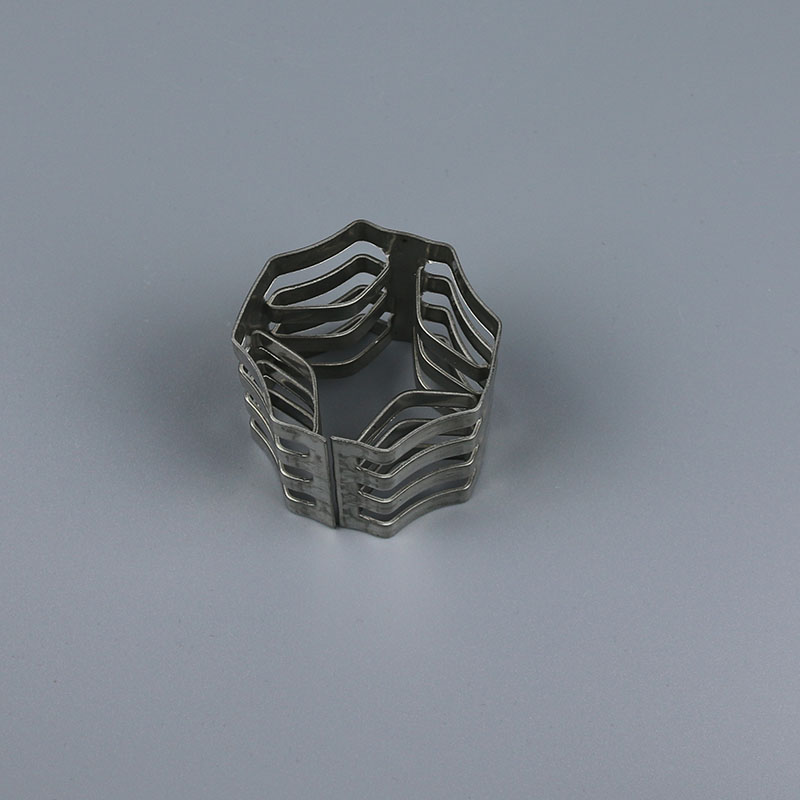 金屬八四內(nèi)弧環(huán)填料,該填料在填裝時排列規(guī)則趨于規(guī)整化,具有規(guī)整填料的效應,并具有高傳質(zhì)效率,和較低的阻力降,可廣泛用于各種操作條件下的蒸餾,吸收,氣提、萃取等傳質(zhì)操作。工業(yè)上,由于填料塔結(jié)構(gòu)簡單,操作方便而得到了廣泛應用,其核心構(gòu)件填料也因此而得到了廣泛的研究.